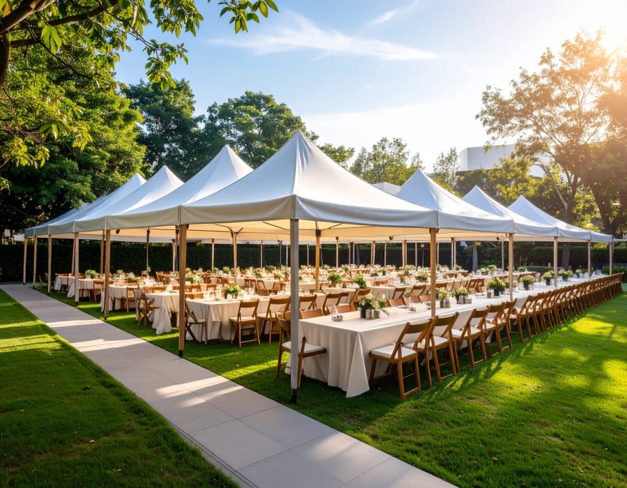 For smaller gatherings or presentations, the 6 x 10m Event Marquee is ideal. Larger corporate events, such as trade shows or company dinners, often use the 6 x 20m Event Marquee or 9 x 21m Event Marquee. These can be arranged with open spaces for exhibitions or sectioned for dining and networking.
