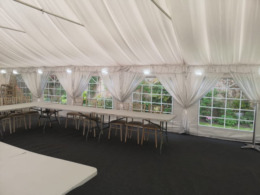 • 6 x 16m Marquee Lining – Adding lining gives the interior a sophisticated finish, hiding the framework and creating a clean, elegant backdrop for decorations. It is particularly well-suited to weddings, anniversaries, and other formal occasions.