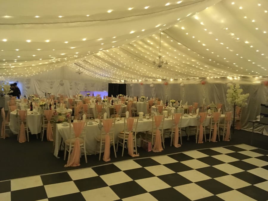 • 9 x 21m Marquee Lining – Adding lining creates an elegant finish inside the marquee, hiding the framework and providing a clean backdrop for decorations. It is especially suited to formal occasions where presentation is important.
