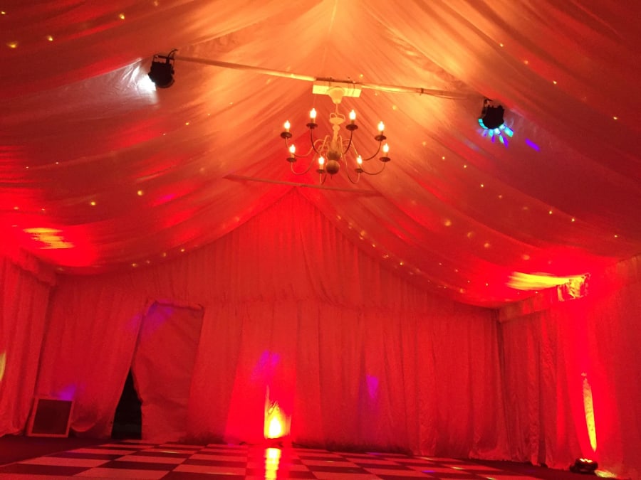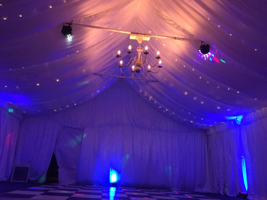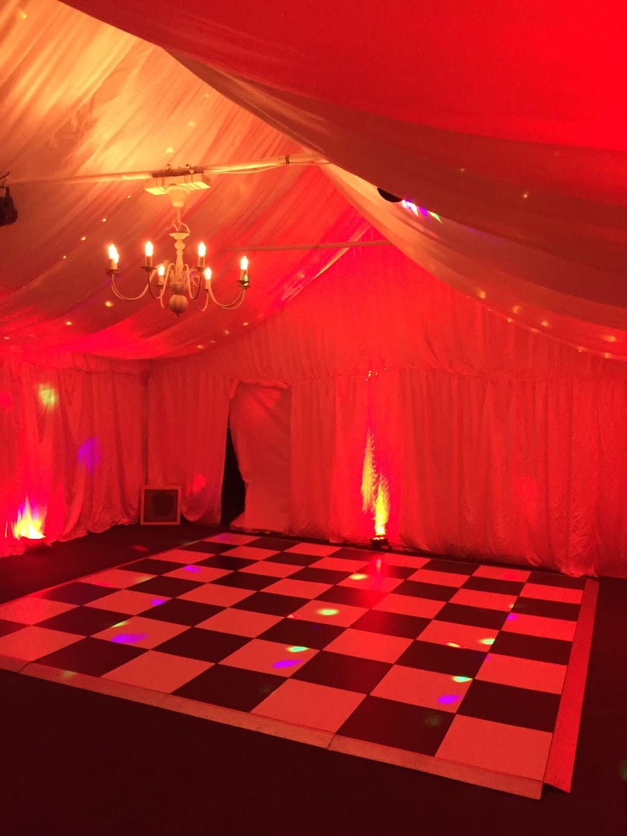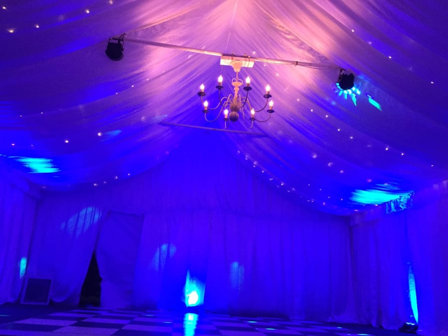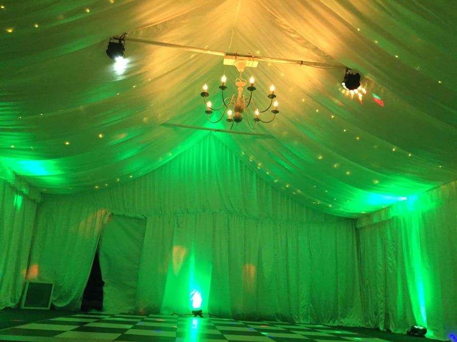 Our Uplighters are a fantastic choice for illuminating your marquee and setting the perfect atmosphere for any event. Each uplighter is priced individually, allowing you to choose the exact number needed to create your desired lighting effect. These lights are designed to work in unison, with the first in the series functioning as the master. Choose from multiple settings, including fade, strobe, solid colour, and sound-activated modes, providing versatile lighting options for any event style. Paired with our marquee lining, uplighters can instantly transform your marquee into an elegant, inviting space.