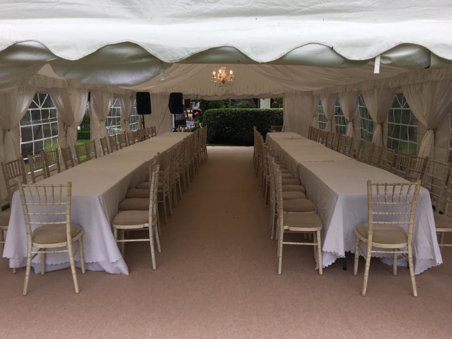 To customise your 6x16m marquee, we offer various additional options. Create the ideal ambiance with lighting from £70, add a refined look with lining at £165, and provide warmth with heating options starting at £100. Our carpet on board flooring, available at £580, provides a stable, polished foundation, enhancing both style and comfort. Additionally, you can explore our marquee furniture, featuring tables, chairs, and luxurious seating to complete your event setup.