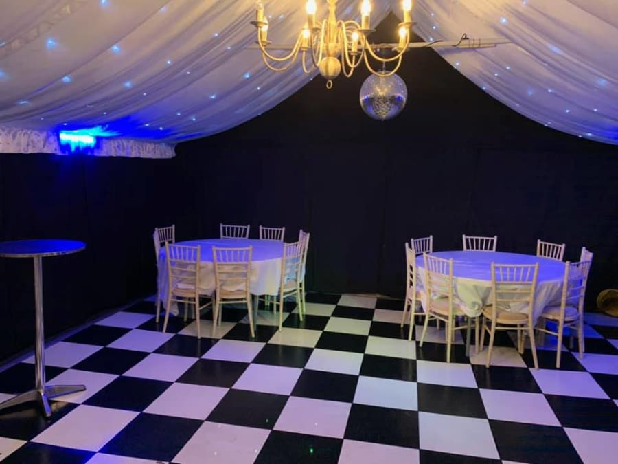 - Flooring and Lining – Our durable marquee flooring and refined marquee linings add a sophisticated finish, creating a polished look that enhances the overall experience.
