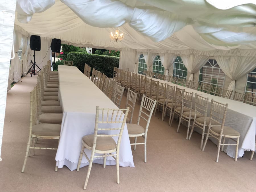 We supply a full range of furniture to suit different event styles. Options include round and rectangular tables, banqueting chairs, Chiavari chairs and table cloths. These can be combined to create layouts for dining, conferences or parties.
